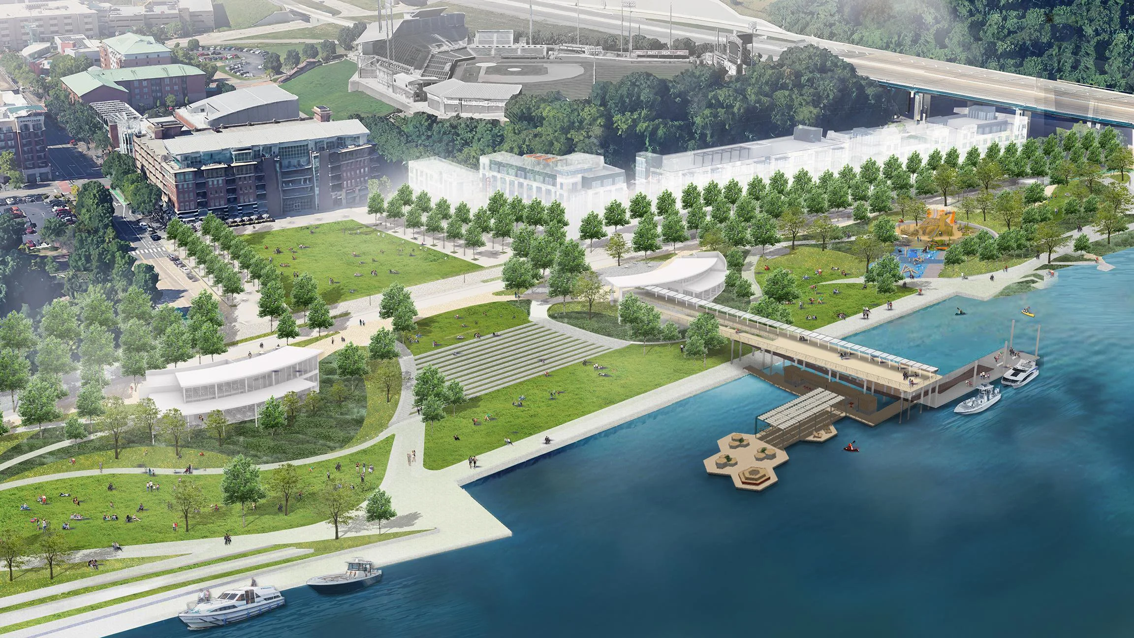 River City Company along with the City of Chattanooga and Hamilton County are working with the design and technical teams on the construction documents for the parks. Plans for the first phase of construction is anticipated to commence in late 2026.